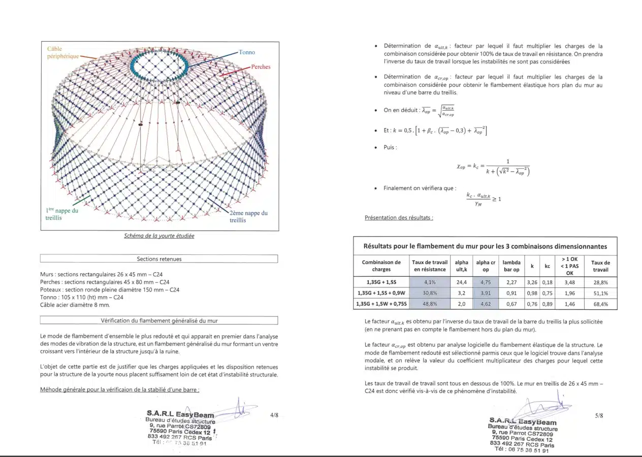 Yourte ERP de 113 m2 comme salle de restaurant. Calcul de structure et registre de sécurité obligatoire.