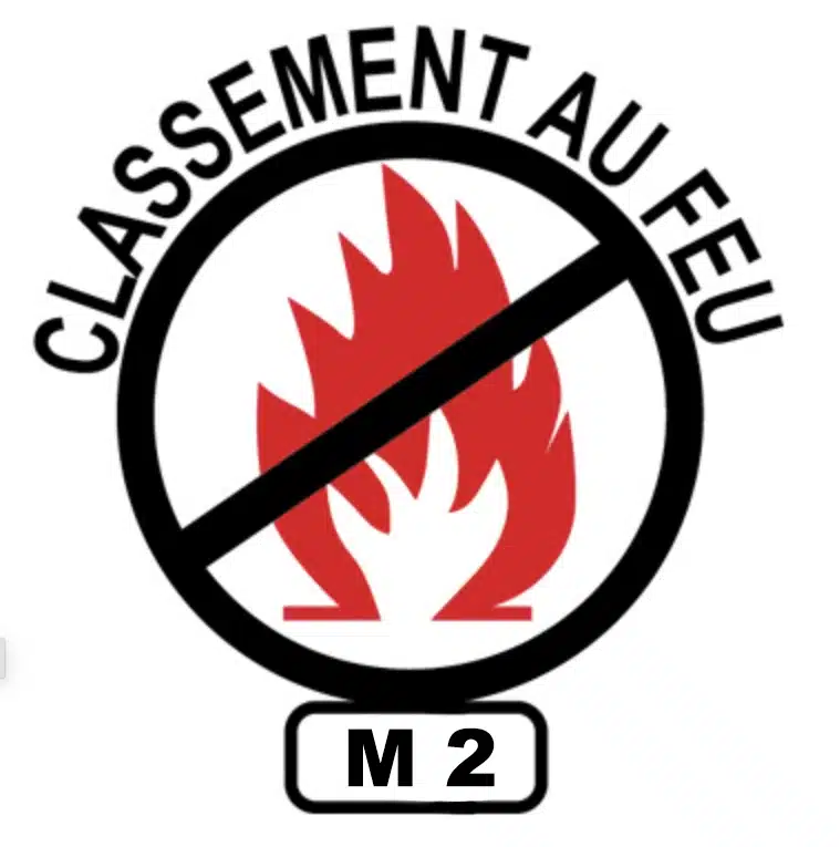- L’enveloppe (toile intérieure, isolant, toile extérieure ) est réalisée en matériaux de catégorie M2 ou équivalent EUROCLASS.